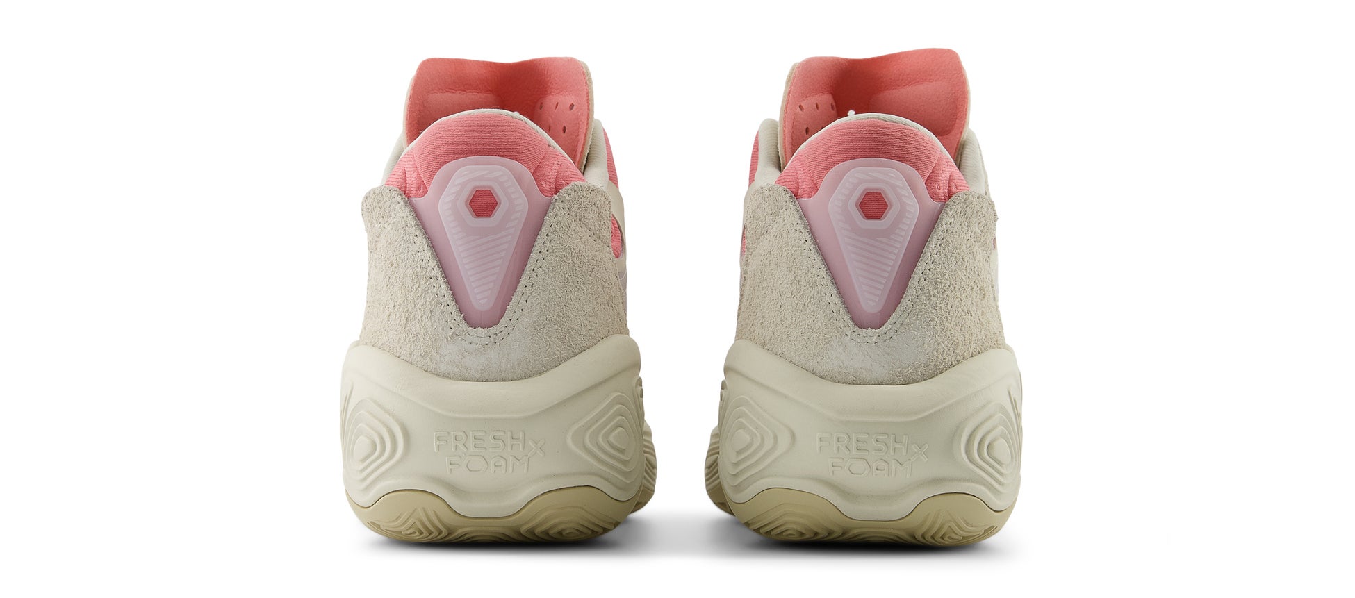 ポジションレスな今日のゲームの中で、第4クォーターでもフレッシュなパフォーマンスを発揮するためのクッション性と安定性を高次元で提供する「Fresh Foam BB」がv2へアップデート。ニューバランスで最も優れたクッション性を誇るFresh Foam Xを二層構造でミッドソールに使用し、中足部に配置したプレートがコート上の素早いカットをアシスト。俊敏性と長時間のゲームでの快適性を両立する1足です。このシューズはザック・ラビーン選手着用モデルです。