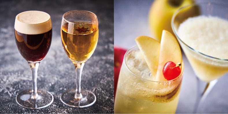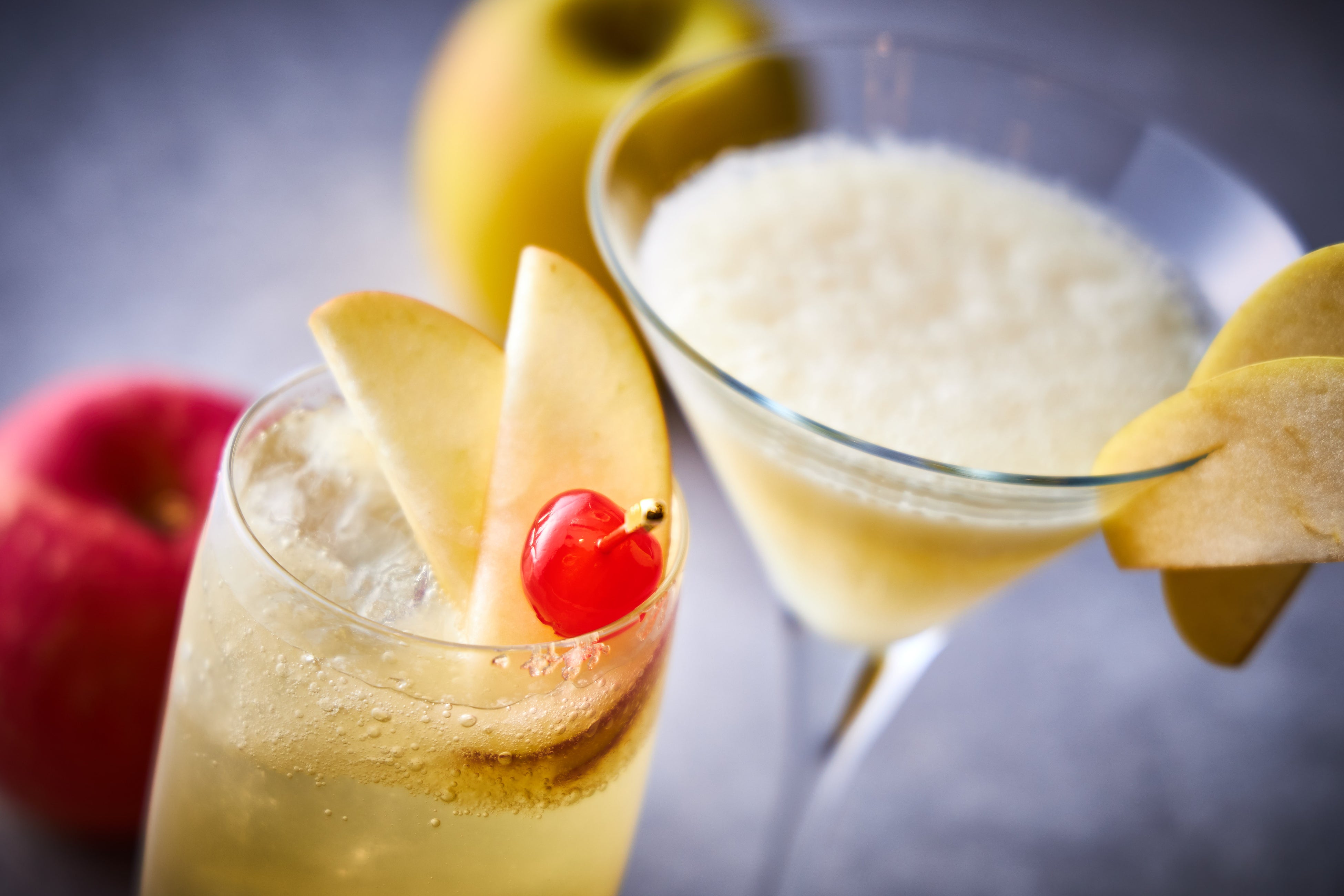 ホテル最上階で煌めく夜景をお楽しみいただけるダイニング&バー「オーヴェスト」では、この時季にふさわしい旬のりんごを使用したオリジナルカクテルを2種類ご用意いたします。はちみつの甘さと「サンふじ」の爽やかな風味が織りなす一杯と、なめらかな口当たりに「王林」のフレッシュな香りが溶け込んでいる一杯。どちらも口の中に広がる冬の訪れを感じるカクテルです。爽やかなテイストをお楽しみください。