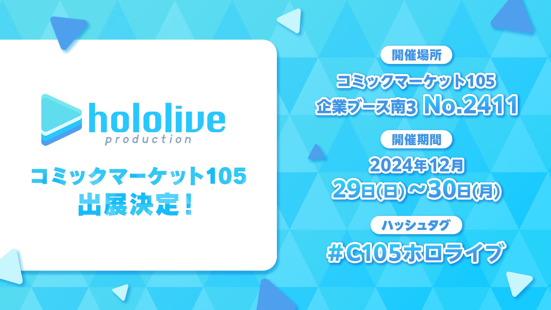 2024年12月29日(日)〜30日(月)に開催される『コミックマーケット105』の『ホロライブプロダクションブース』では、年末年始を飾る企画が盛りだくさん!
