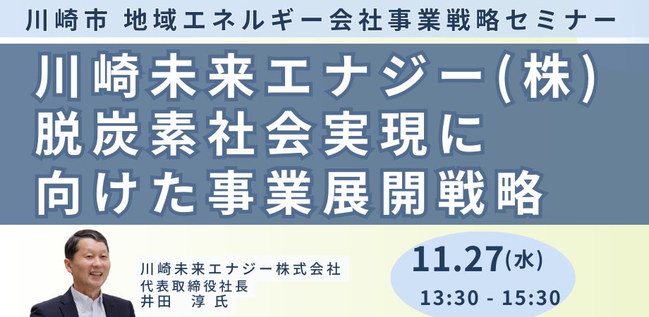 【JPIセミナー】川崎未来エナジー(株)「脱炭素社会実現に向けた事業展開戦略」11月27日(水)開催