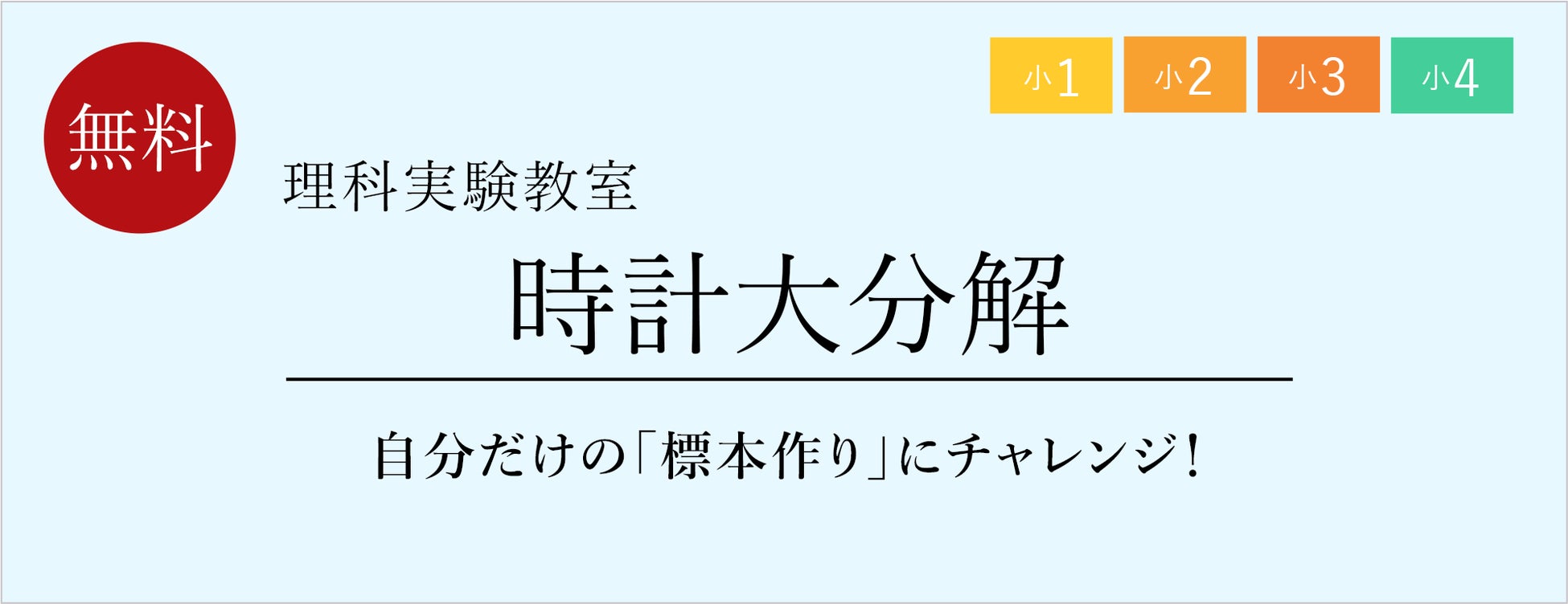 株式会社増進会ホールディングス(Z会グループ)のグループ会社、株式会社栄光(本社:東京都千代田区 代表取締役社長:下田勝昭)が運営する進学塾・栄光ゼミナールは、小学1~4年生と保護者を対象に、理科実験教室「時計大分解~自分だけの『標本作り』にチャレンジ~」を、2024年6月29日(土)・30日(日)、7月6日(土)・7日(日)に無料開催します。