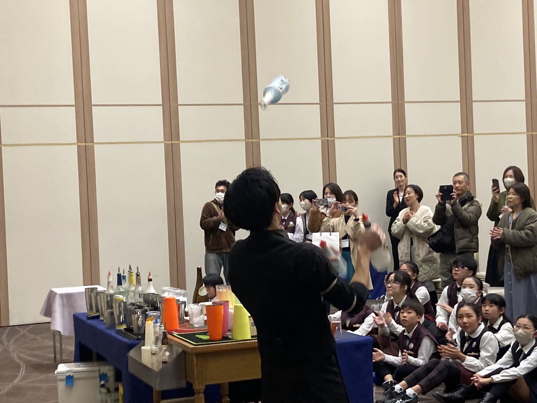 ホテルバーテンダーが軽快な音楽に合わせて、お酒のボトルを投げたり、カラフルなドリンクを作る、ワクワクするパフォーマンスを披露します。