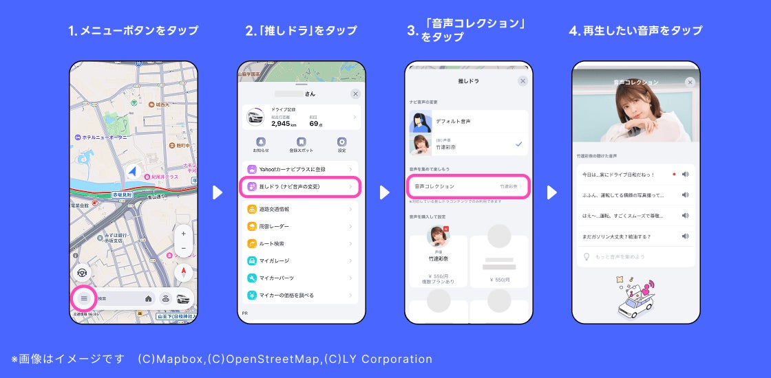 ※1:Yahoo!カーナビ、キャラクターの音声案内でドライブが楽しめる「推しドラ」機能を提供開始(2024年10月28日プレスリリース)https://www.lycorp.co.jp/ja/news/release/009504/