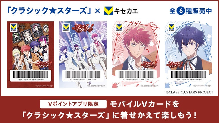 CCCMKホールディングス株式会社(本社:東京都渋谷区、代表取締役社長兼CEO:髙橋 誉則)は、Vポイントアプリの「モバイルVカード」を好きなデザインに着せかえできる「Vキセカエ」(https://ip.tsite.jp/guide)において、TVアニメ『クラシック★スターズ』より、メインキャラクターを中心としたデザイン全6種を、2025年4月23日(水)から2026年4月22日(水)まで期間限定で販売いたします。