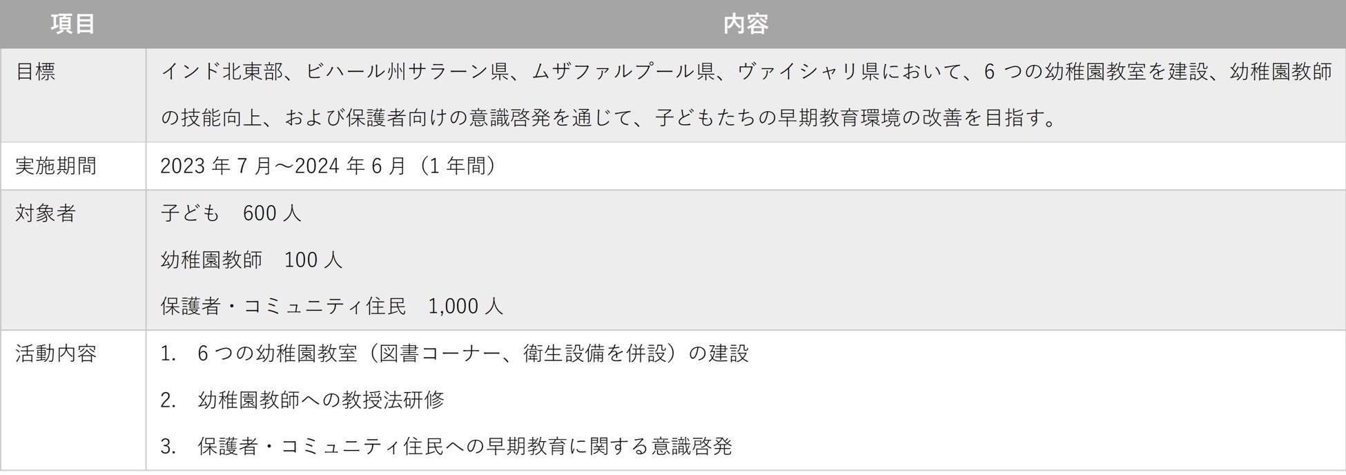 2022年、インド・ビハール州に6つの幼稚園教室を建設。