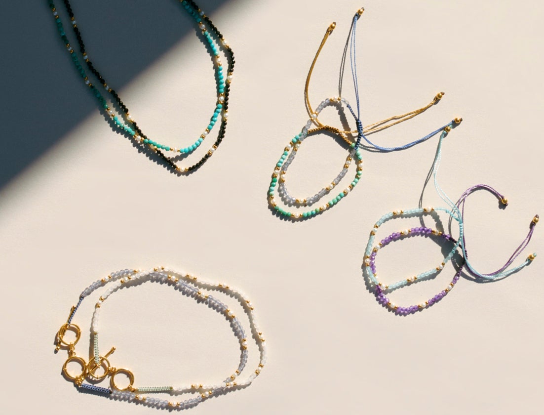 対象ジュエリーをご購入いただくと、最大1,100円を子どもたちの教育支援に寄付できる“I am” Donation。新作は、地中海を彷彿とさせるような、涼しげな色彩のカラーストーンを連ねた、ブレスレット、チョーカー、アンクレットをご用意しました。