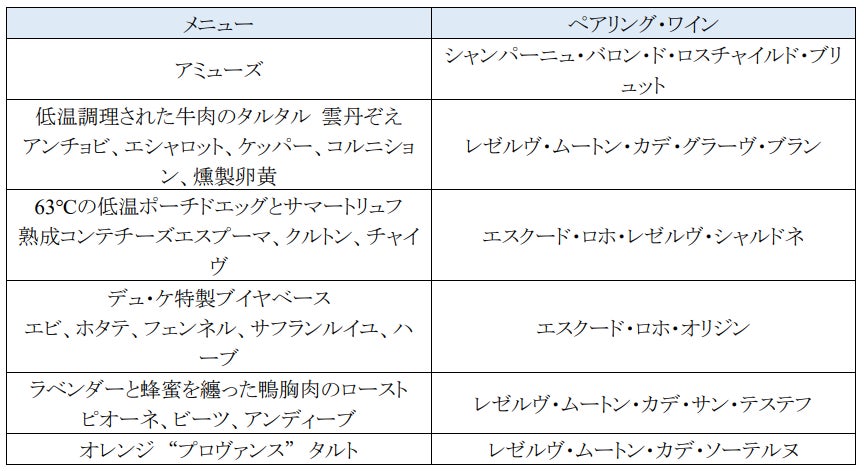 バロン・フィリップ・ド・ロスチャイルド社とのワインペアリング・ディナーイベントの概要は以下のとおりです。