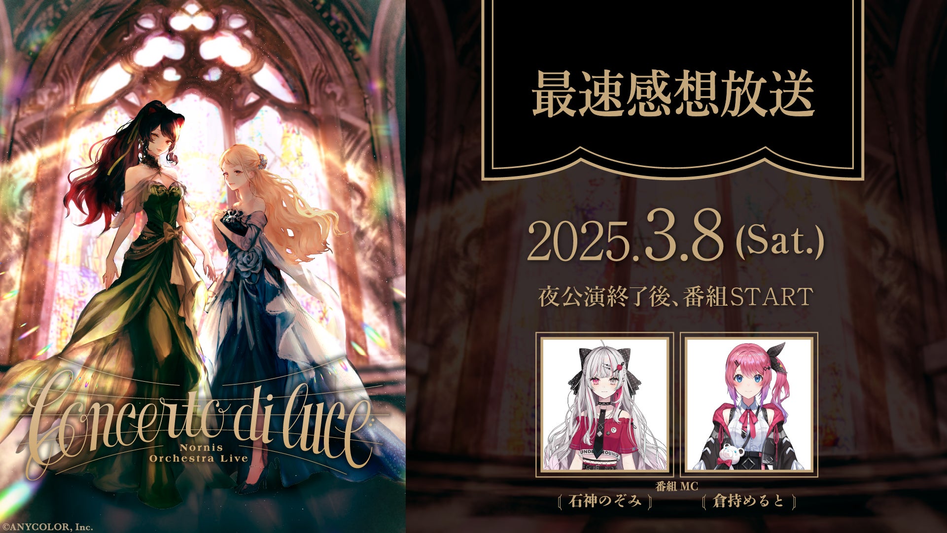 また、夜公演終了後実施予定の「最速感想放送」では、ライブ出演を終えたばかりのNornisを迎え、MCライバーとともに感想や裏話などをお届けします。