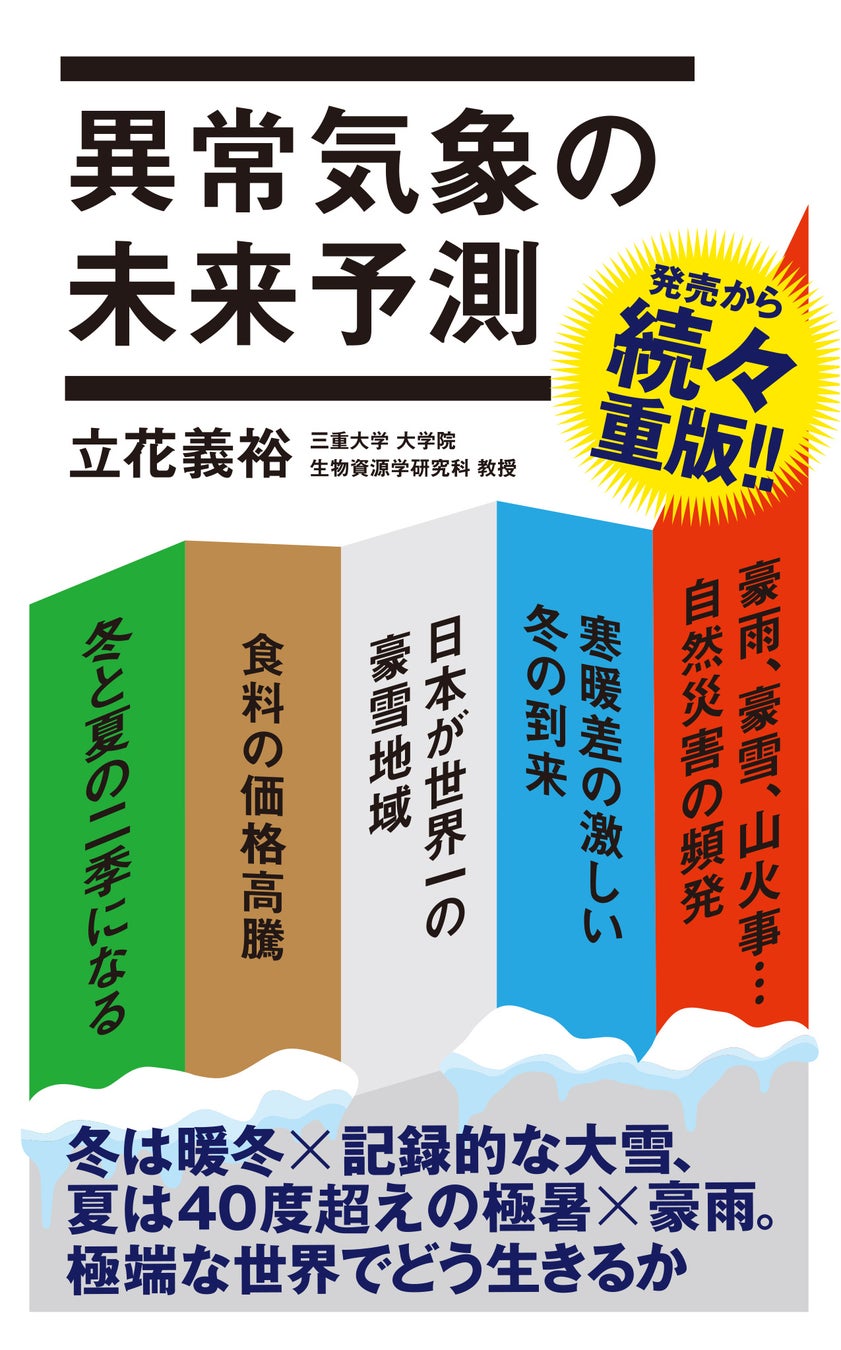 株式会社ポプラ社より今年7月に刊行された『異常気象の未来予測』は、三重大学大学院教授で気象学・異常気象・気候力学を専門にしている立花義裕氏が、異常気象や気候問題の原因やメカニズム、温暖化対策についてあらゆる角度から解説している一冊。