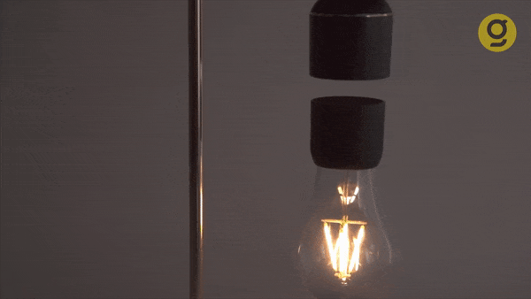 電球が浮かんでいる状態で電源がなくなっても、電球は上のポールにすぐさまカチッと引っ付きます。