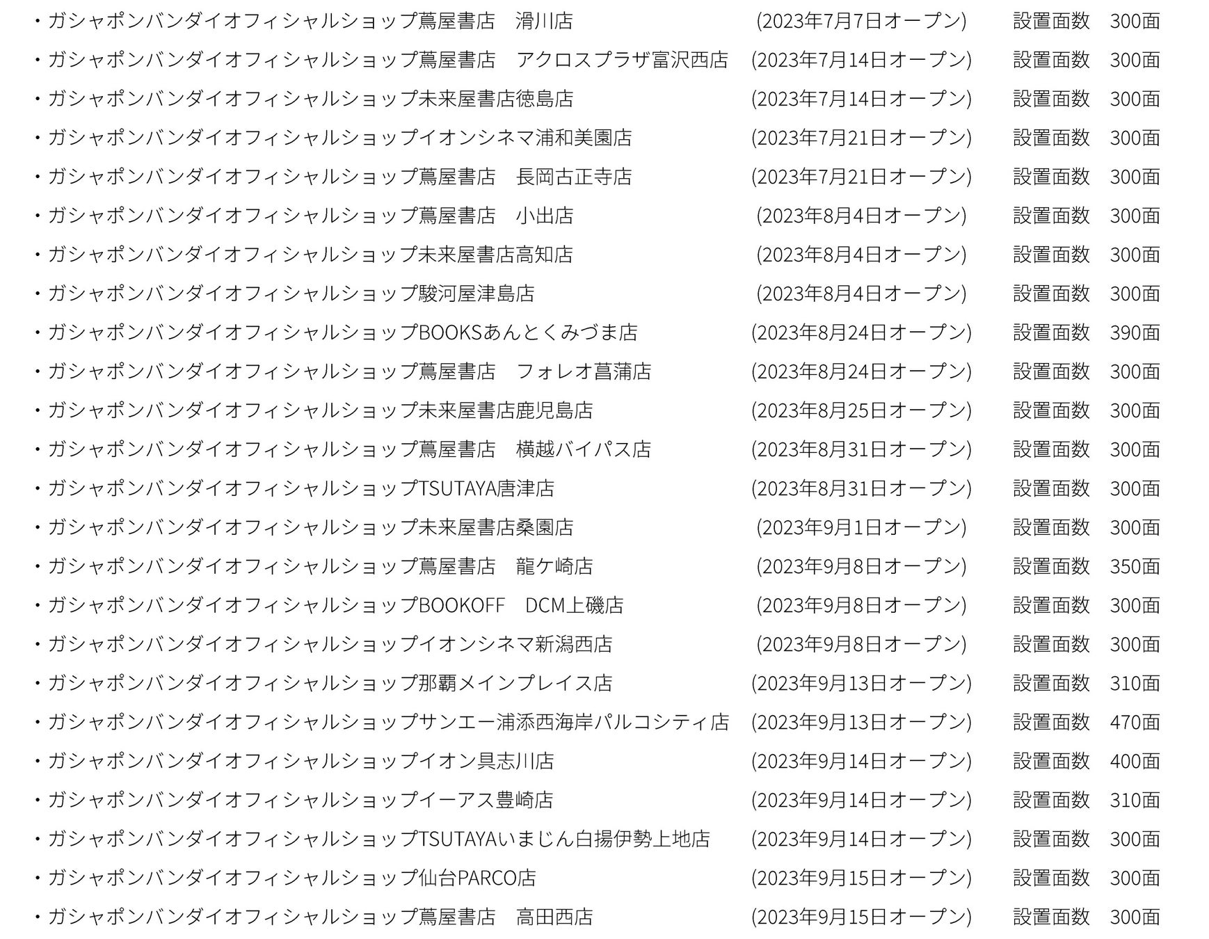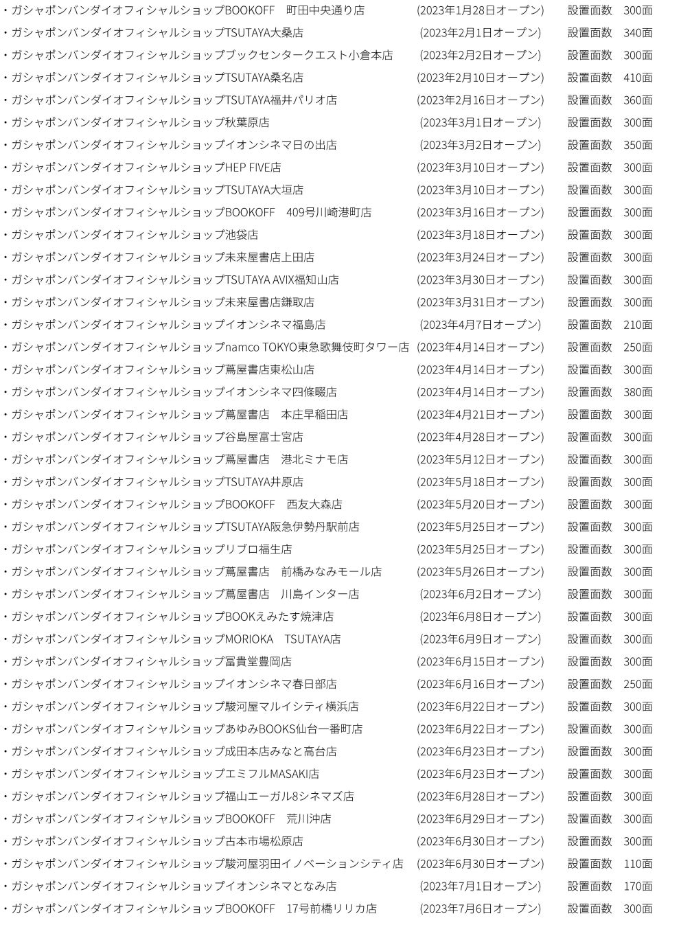 【日本国内展開中の『ガシャポンバンダイオフィシャルショップ』店舗リスト:計105店舗】