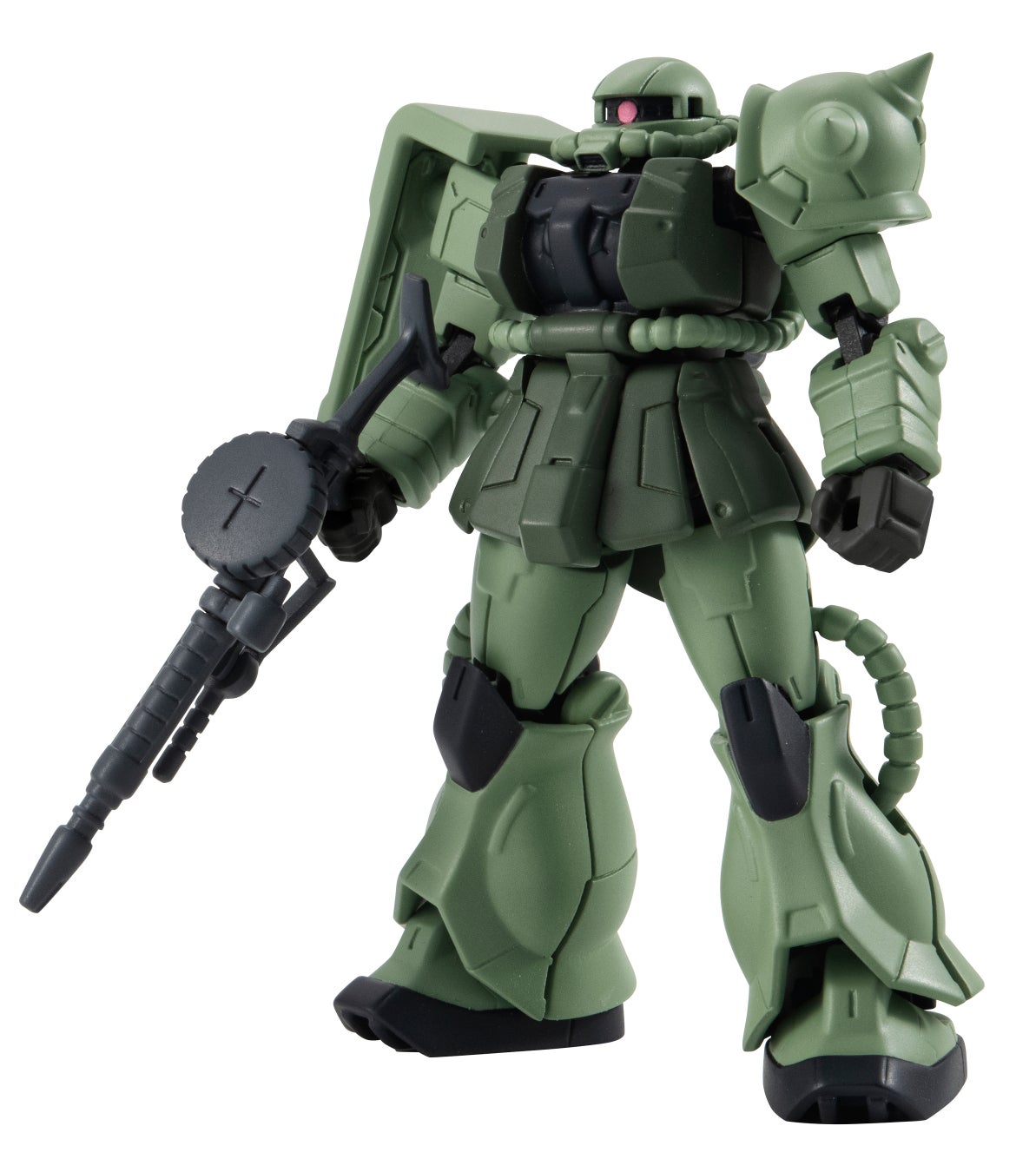 機動戦士ガンダムのカプセルアクションシリーズ第2弾、量産型ザクが登場。全高約90㎜、さまざまなポージングが可能。外装がクリアで内部フレームが見えるメカニカルクリアもラインアップ。