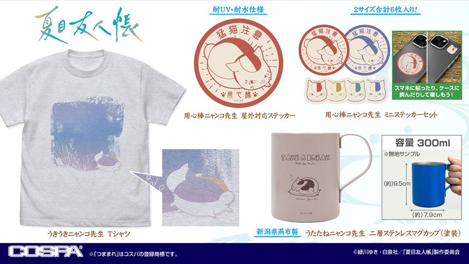 『夏目友人帳』より、Tシャツ、ステッカー」など、「ニャンコ先生」の新作グッズがCOSPA(コスパ)から登場。