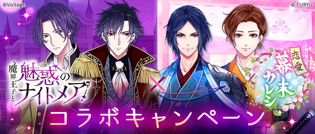 ボルテージとフリューの人気アプリが再びコラボ!「魔界王子と魅惑のナイトメア」×「恋愛幕末カレシ~時の彼方で花咲く恋~」8月3日(水)よりコラボキャンペーンを開催