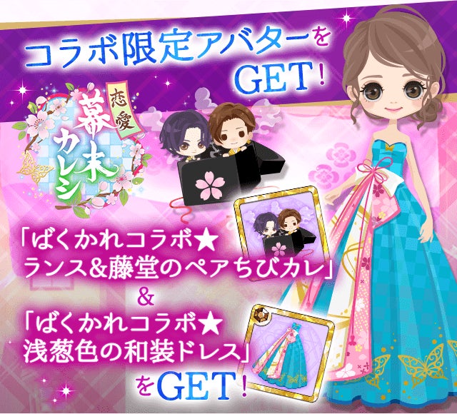株式会社ボルテージ(本社:東京都渋谷区 代表取締役:津谷 祐司)は、提供中のボル恋タイトル「魔界王子と魅惑のナイトメア」 (以下、「魔界ナイトメア」)がフリュー株式会社(本社:東京都渋谷区、代表取締役社長:三嶋 隆)の運営する恋愛シミュレーションゲーム「恋愛幕末カレシ~時の彼方で花咲く恋~」(以下、「恋愛幕末カレシ」)との期間限定コラボキャンペーンを、8月3日(水)より実施することをお知らせいたします。