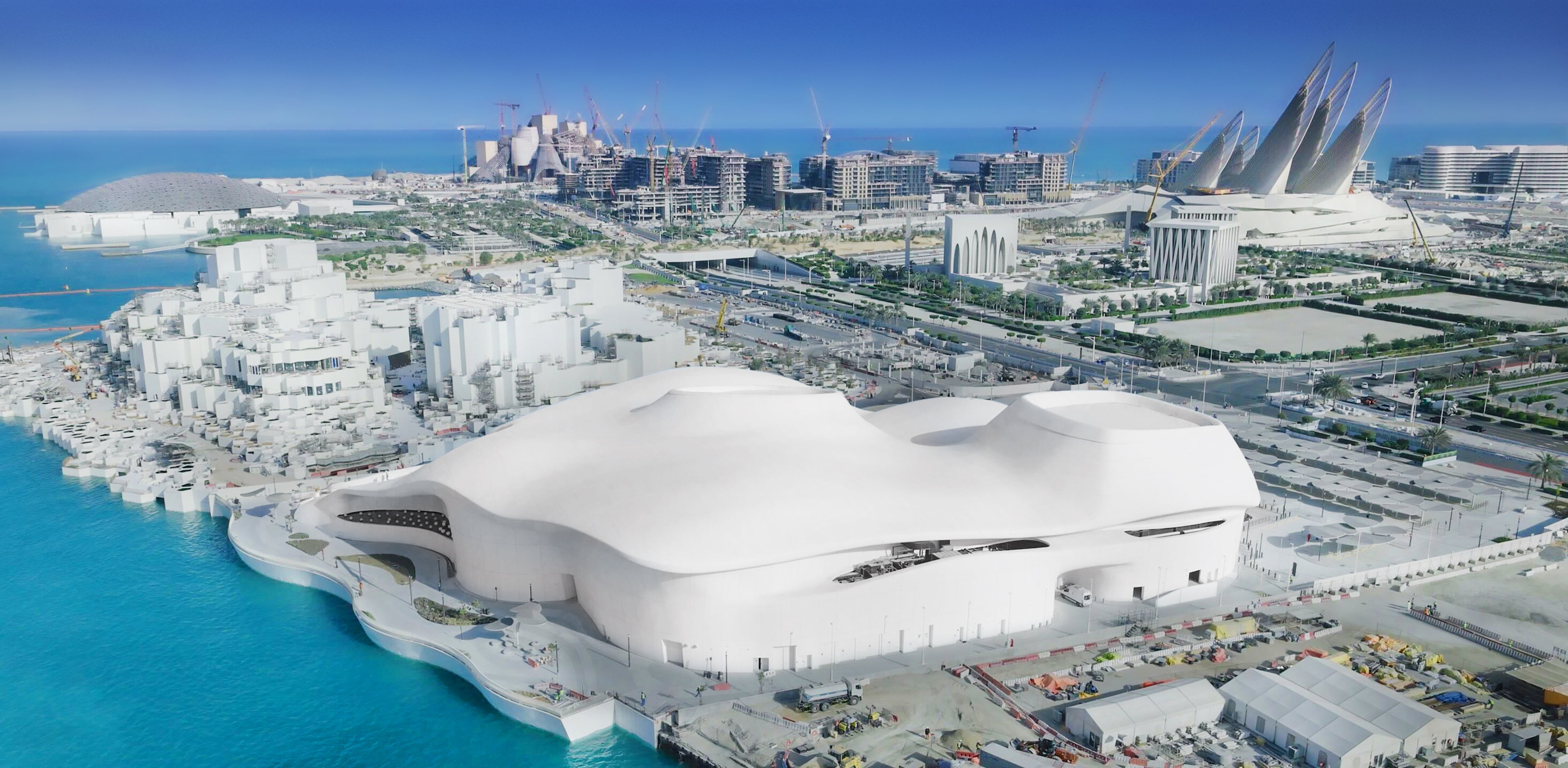 teamLab Phenomena Abu Dhabiは、アブダビの文化中心地であるサディヤット文化地区に、2025年4月18日(金)にオープンしました。同地区にはルーヴル・アブダビ、ザイード国立博物館、アブダビ自然史博物館があり、グッゲンハイム・アブダビも加わる予定です。© アブダビ文化観光局、ミラル