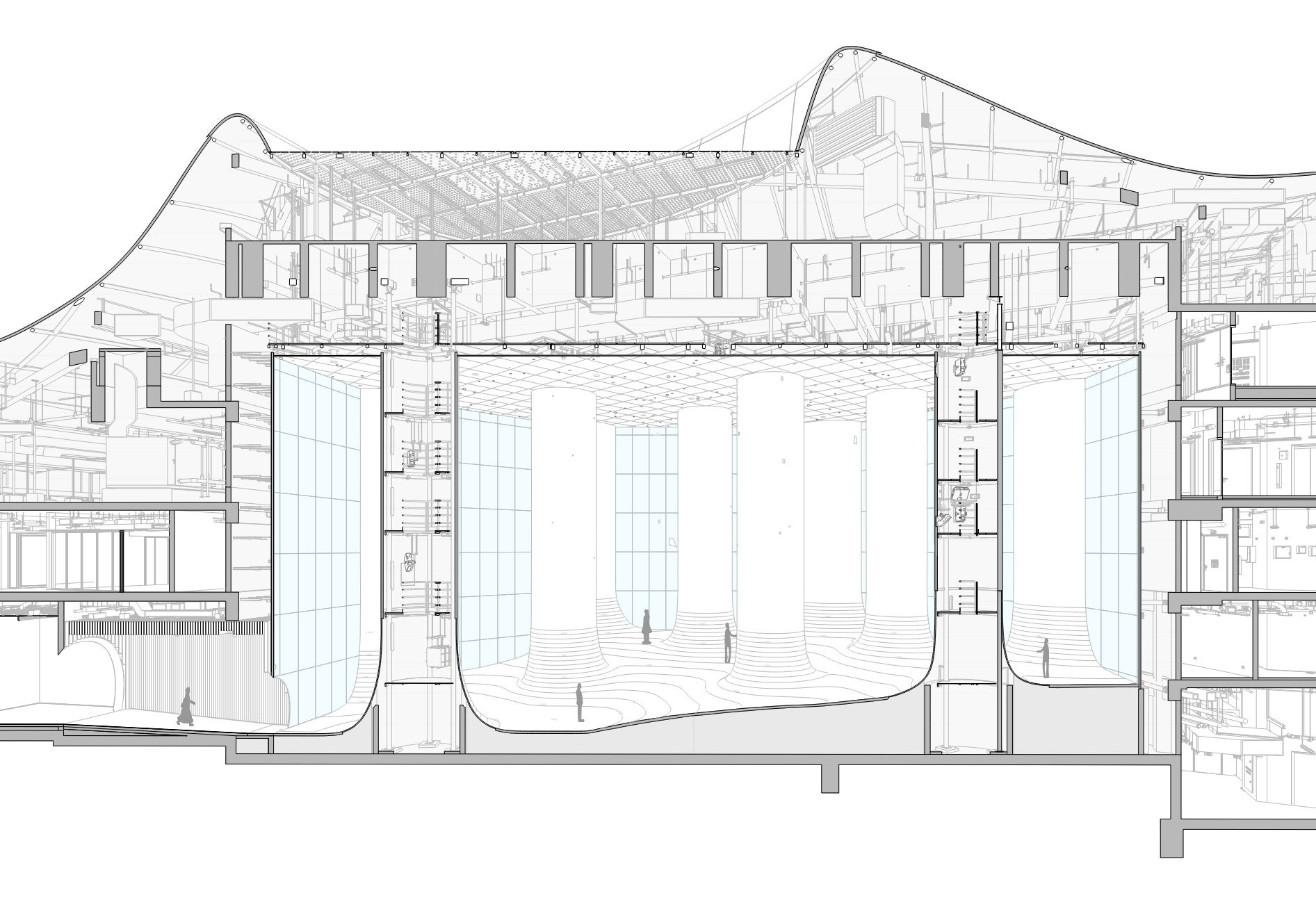 会場の曲線的な構造は来場者を包み込み、視覚的にも身体的にも一体感のある体験を提供し、それぞれのインタラクションがもたらす感情的な響きをより一層高めます。建物の外観も体験の本質を反映・増幅するよう緻密に設計されており、すべての来場者の記憶に鮮烈で忘れがたい印象を残します。