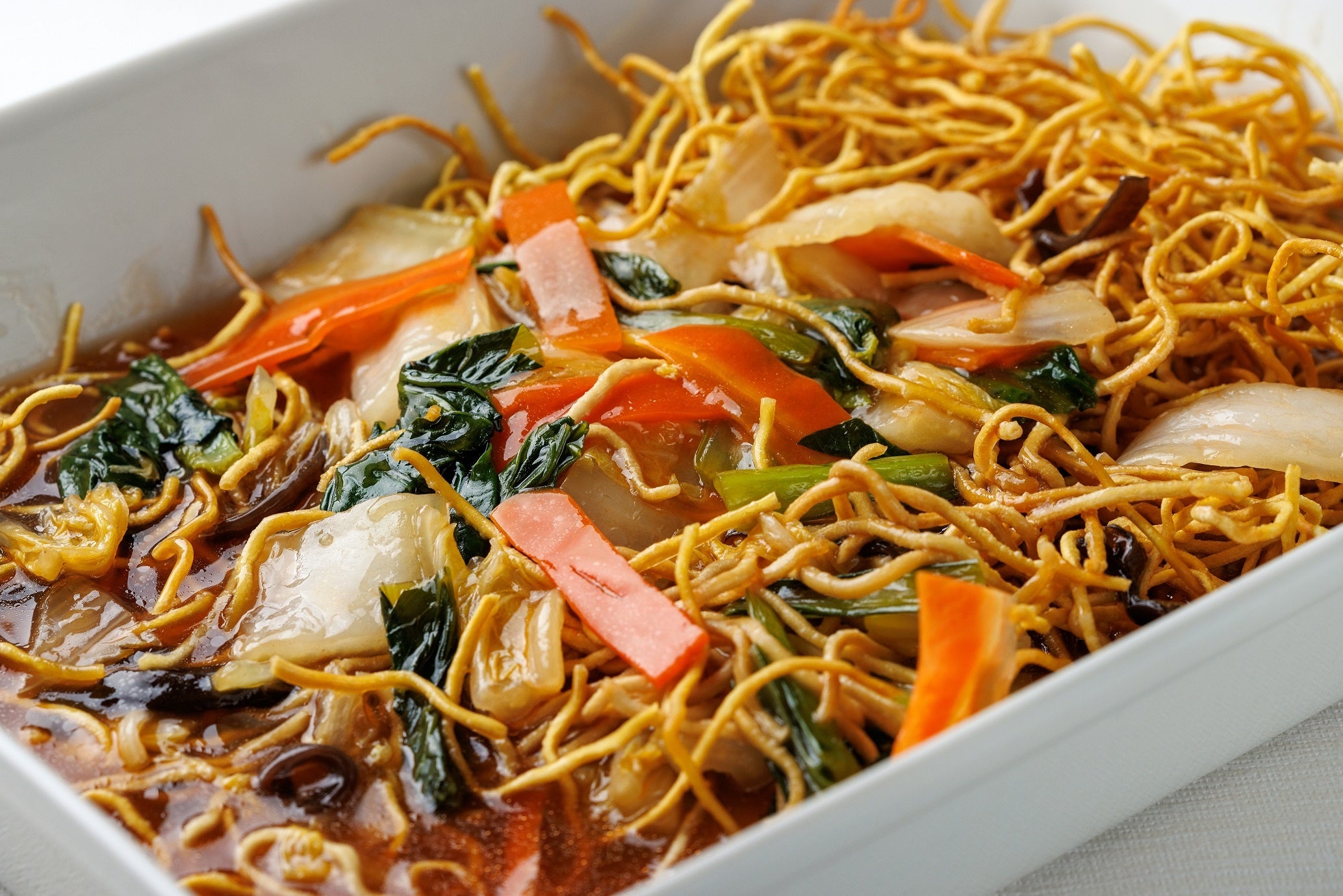 イカ・キクラゲ・白菜・ニンジン・小松菜入りあんかけかた焼きそば ~餡をかけて~