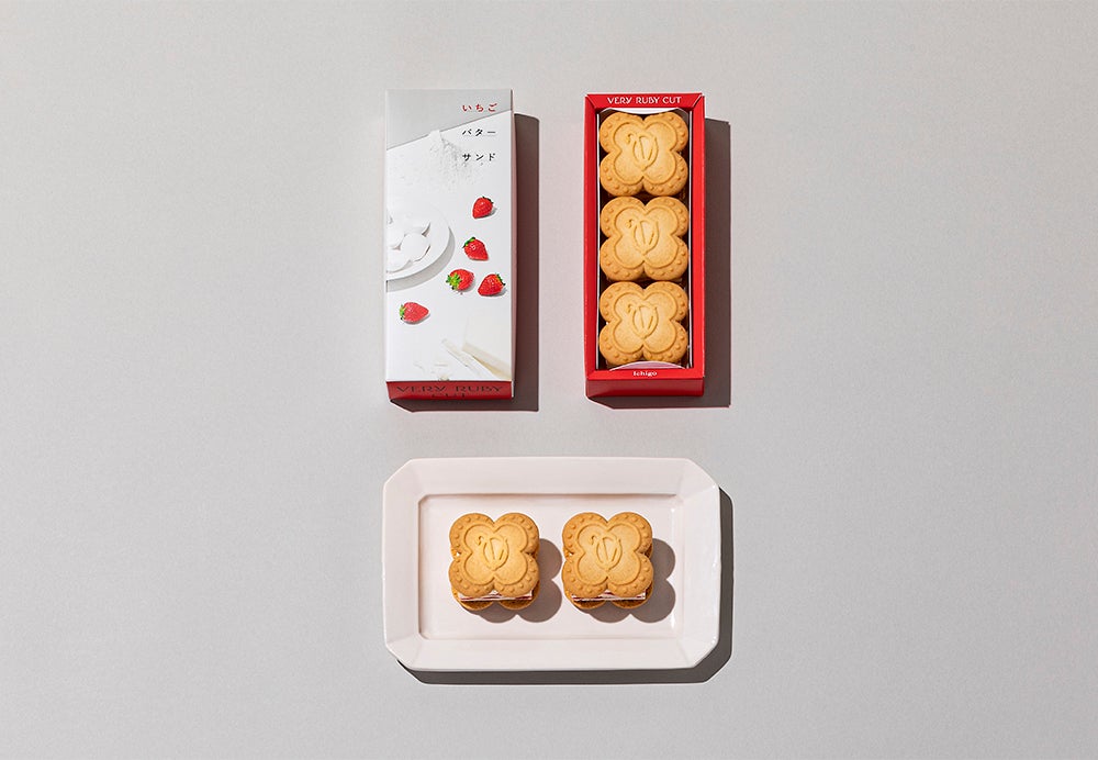 「VERY RUBY CUT」の魅力を最も体感できる代表作がこちら。おすすめNo.1ギフト、驚くほどに柔らかい『いちごミルクサンド』です。指先にしっとり吸い付いて、お口の中で苺とホワイトショコラがとろっと溢れるやわらか食感にきっと驚いてしまいます。当店自慢のミルクサンド、ぜひ頬張ってみてください。