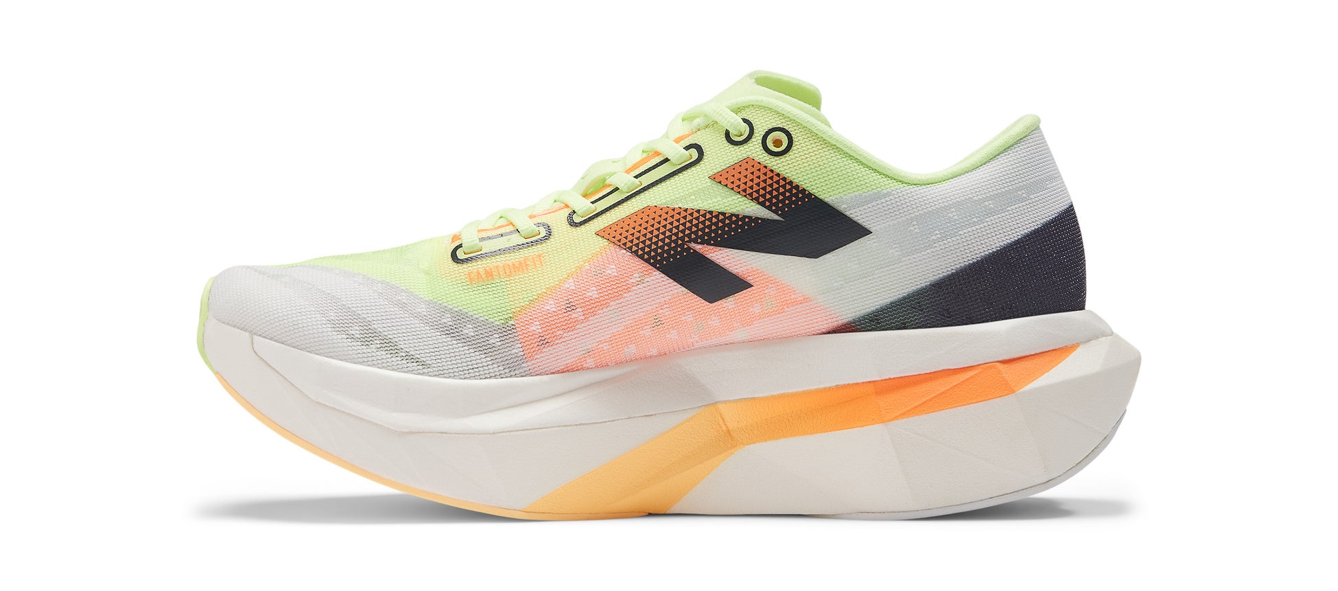 究極の軽量性を実現しながら2種類の素材を組み合わせ、確かなFit感を提供するFANTOMFIT(ファントムフィット)を採用。足とシューズが一体化となり、スピードレースでの靴内のブレ抑制、エンジニアードメッシュアッパーが必要箇所での最適な伸縮性を提供します。