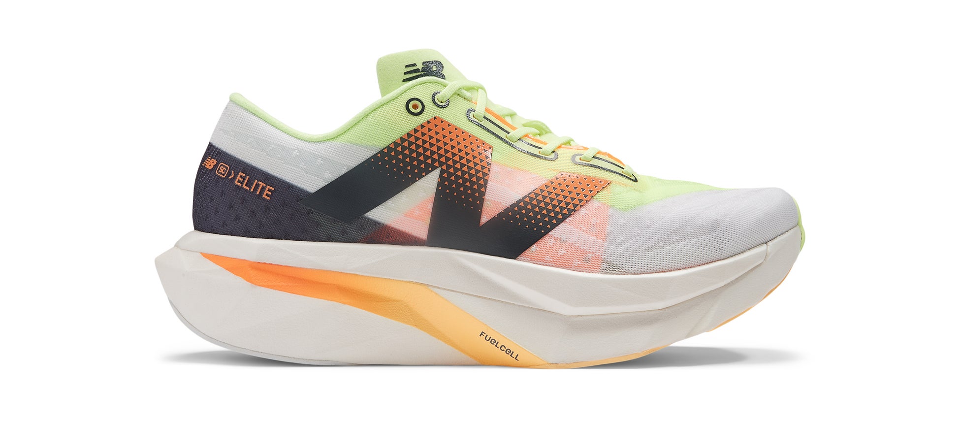 「前作と比較し、コンパウンドにはPEBAを採用。より反発弾性・エネルギーリターンの向上を実現させた新たなFuelCellコンパウンドは、前への推進力を劇的にUP。よりスピード感を意識したソール形状と合わさり、高速レースにも最適な、スピードに乗りやすい一足に。