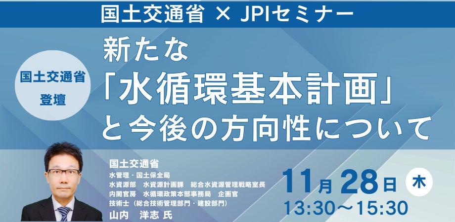 【JPIセミナー】国土交通省「新たな”水循環基本計画”と今後の方向性について」11月28日(木)開催