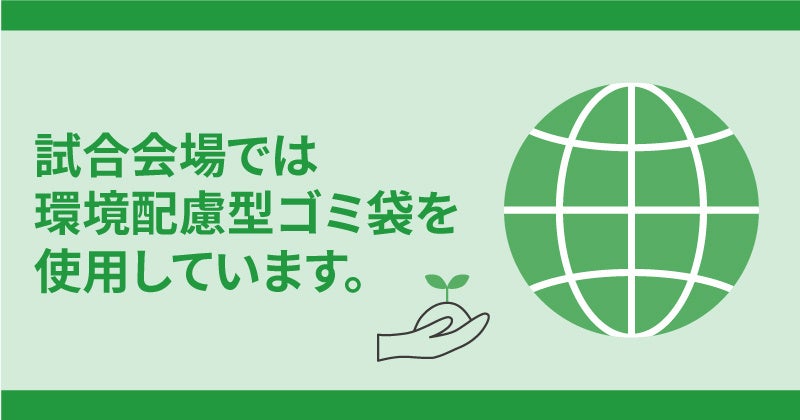 試合会場には各所にゴミ箱が設置されていますが、このゴミ袋にはCO2排出削減を考えた環境配慮型のゴミ袋を使用しています。