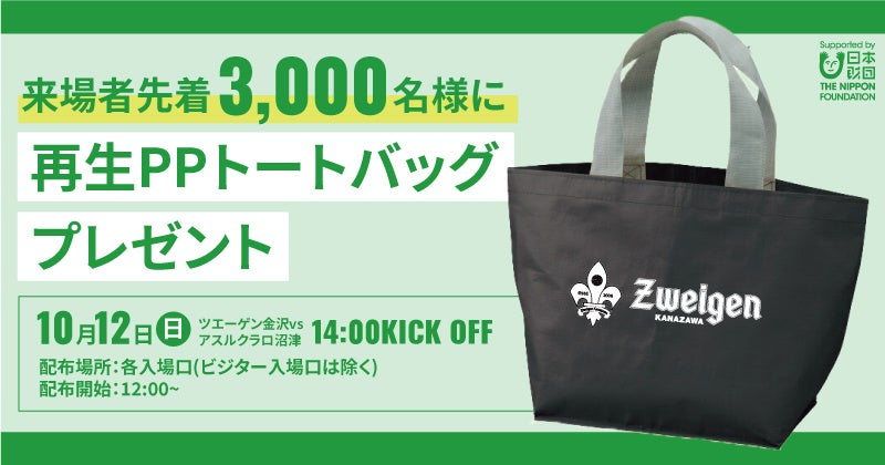 試合当日は、廃棄予定だったPP(ポリプロピレン)を回収・再利用して製造したトートバッグを来場者先着3,000名様にプレゼントなど様々なイベントが開催されます。