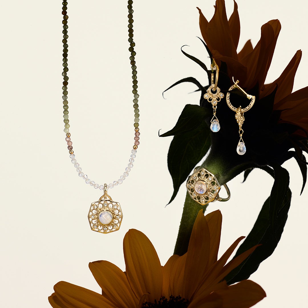necklace charm 121,000yen/ K10, alexandrite, garnet, emerald, tourmaline and pearl