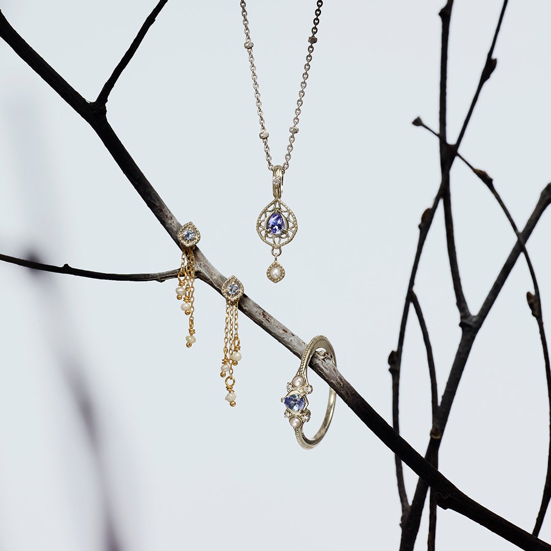 12月の誕生石でもあるタンザナイトが神秘的な彩りと輝きを放ちます。