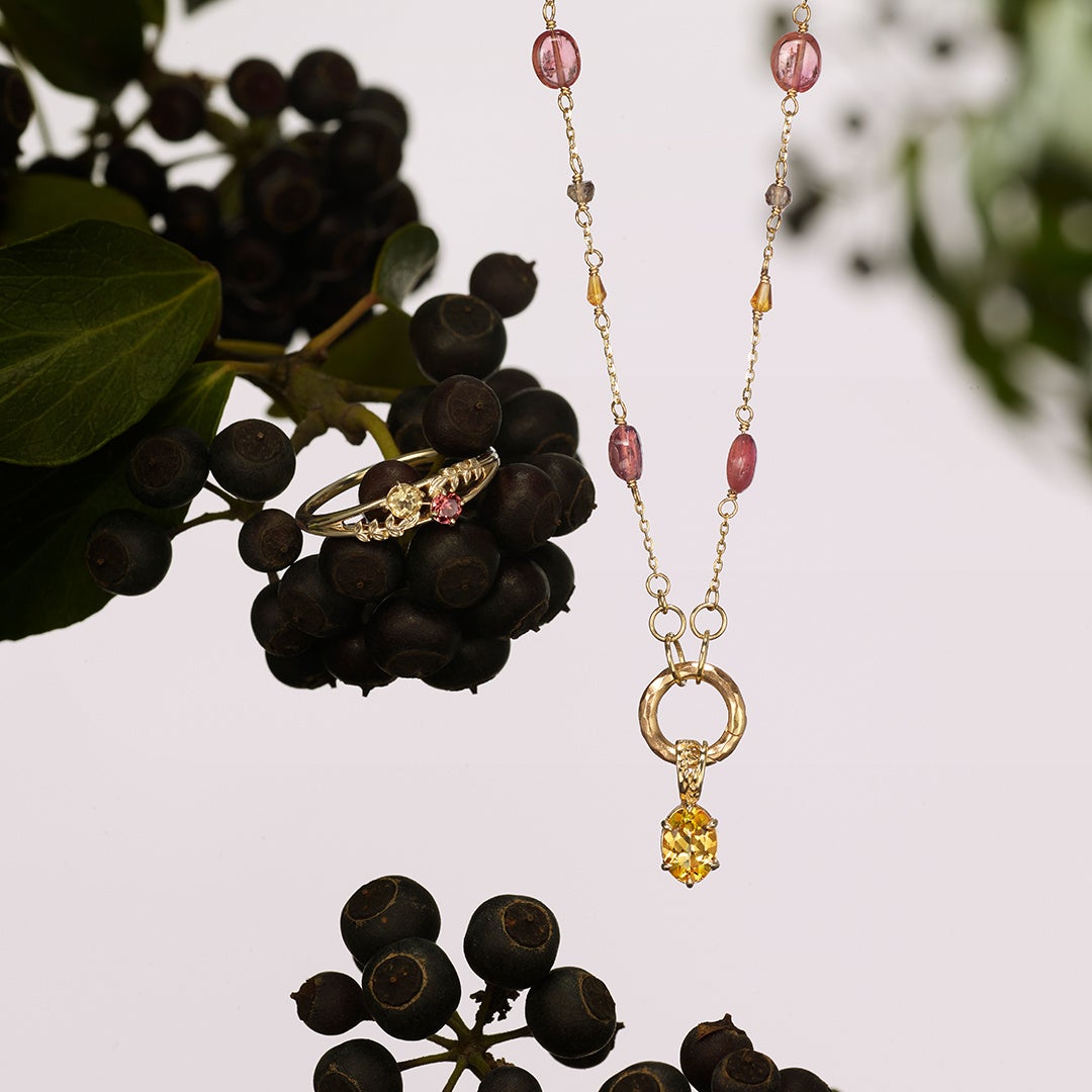 necklace 77,000yen/ K10, gold filled metal, tourmaline, quartz and citrine