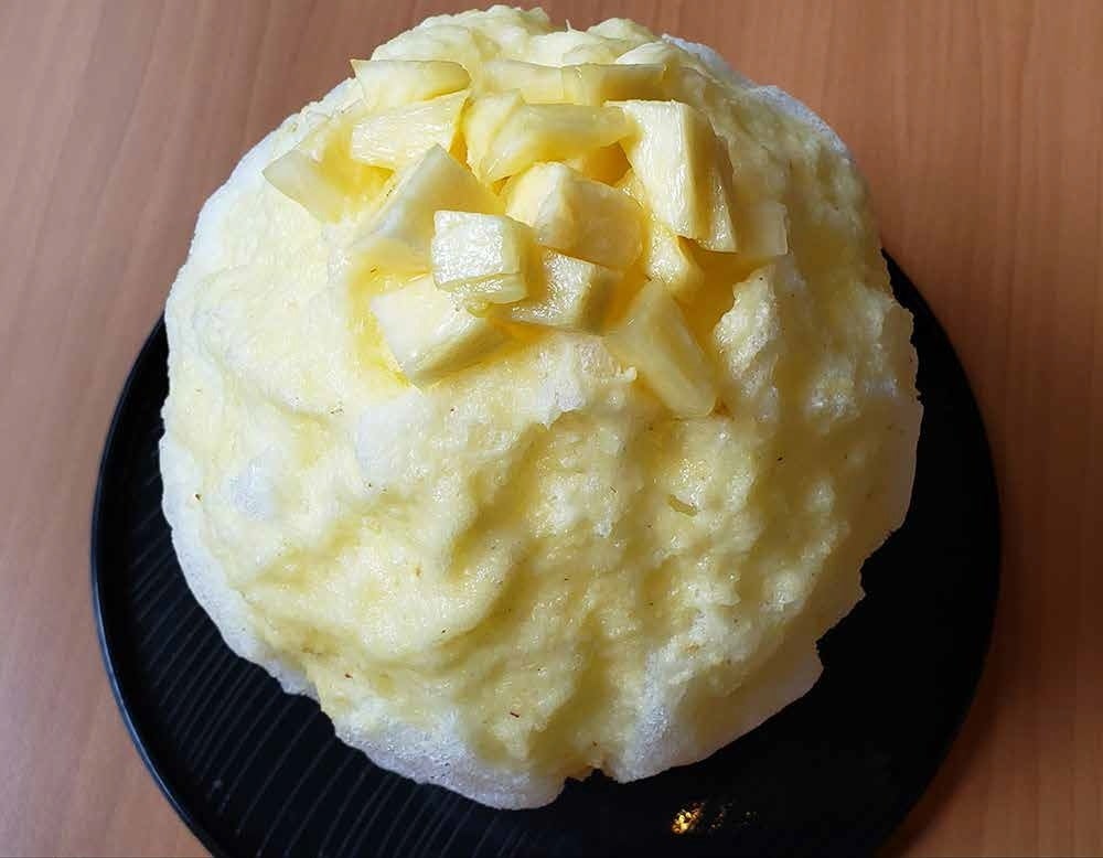 オーダーが入った後に、生のパイナップルを使ってシロップを手作り。自家製練乳の甘さとパイナップルの酸味がなんともぴったり!