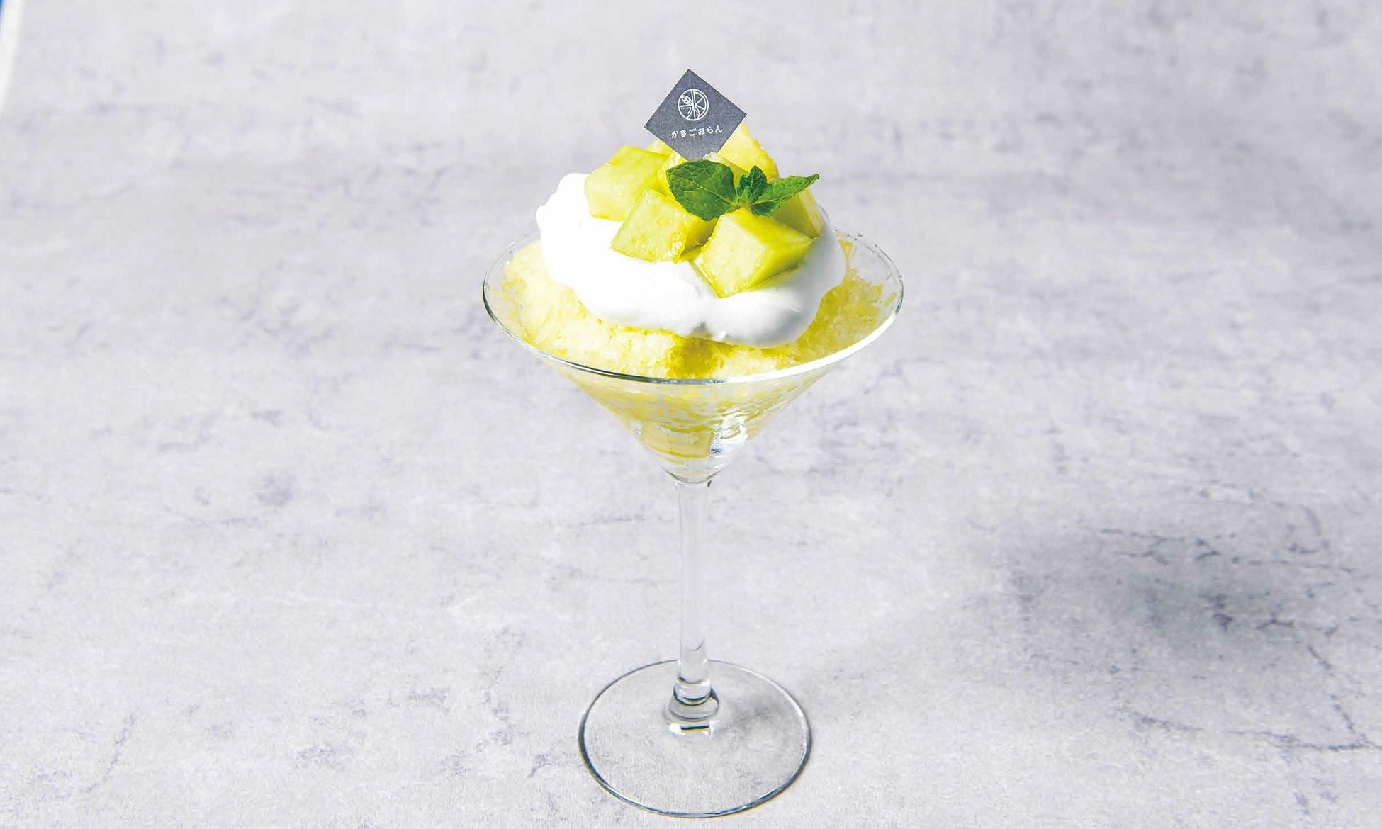 水の氷は一切使わずに、フルーツを凍らせて作った進化系かき氷専門店。仕掛けるのは、“おむすびケーキ”を手掛けたスイーツプロデューサー・TSUBASA。フルーツ本来の味わいを引き出しながら、カクテルやパフェのように斬新で華やかなルックスに仕上げました。メロンのかき氷は、1本の木から1玉しか収穫せず大切に育てられた静岡県産クラウンメロンを使用。その甘く贅沢なおいしさをぜひこの機会に。