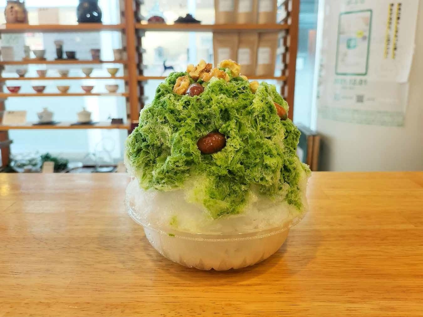 お茶専門店が作るかき氷は、お茶のフレーバーが豊富。奈良県産の抹茶を贅沢に使用し、牛乳を少し加え
