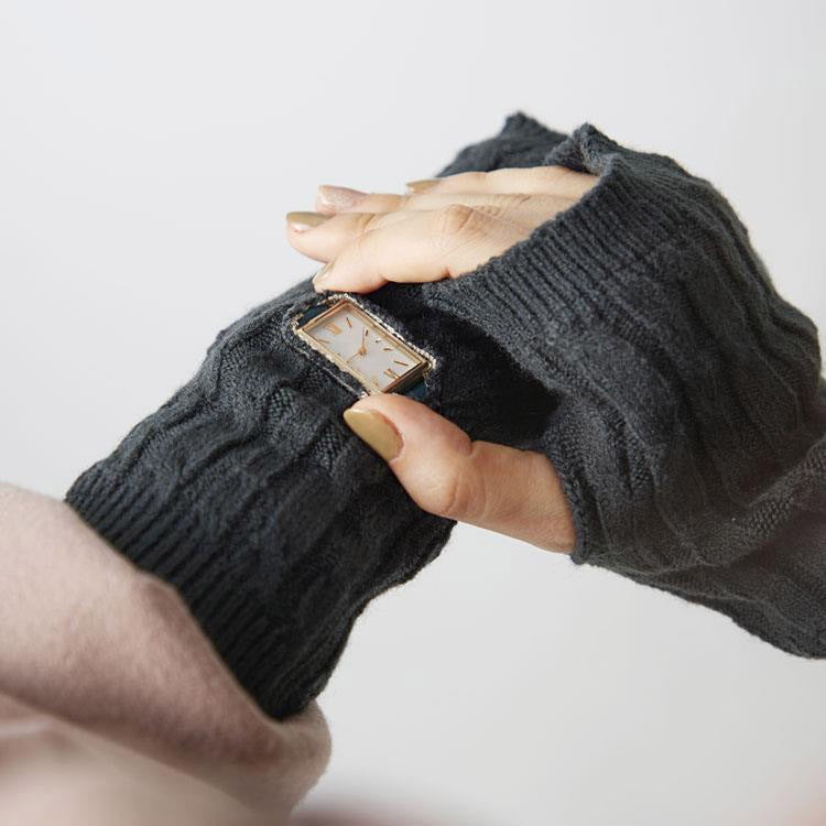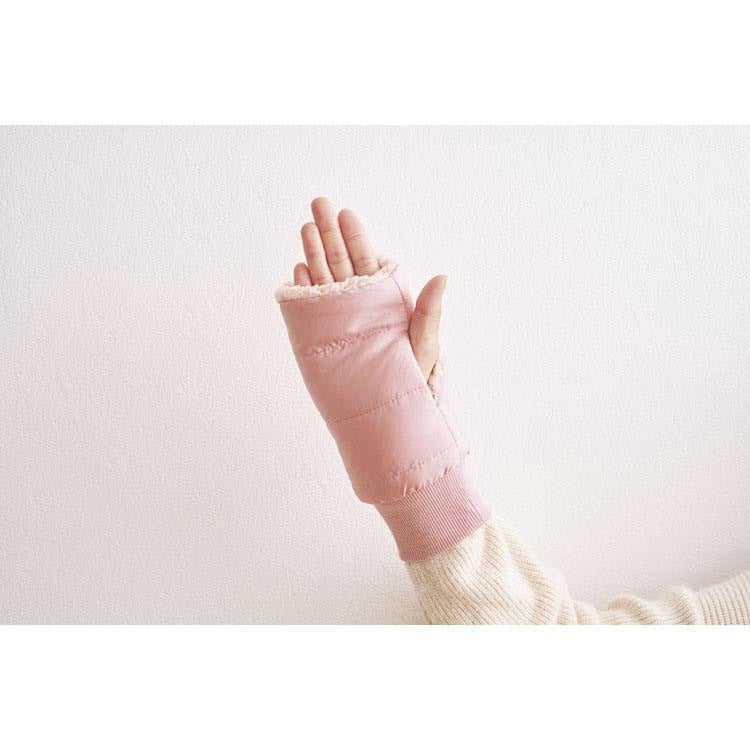 内側にふんわりとしたボア素材を使用し、指先が出るデザインでパソコン作業も楽々。