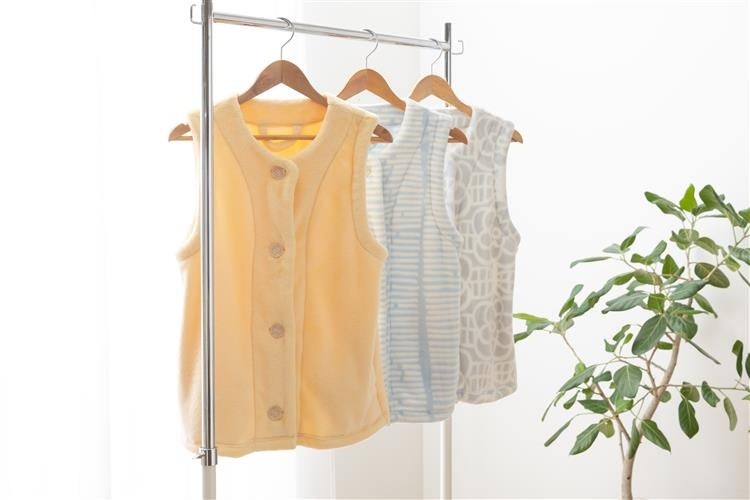 毛布のようなあたたかさで人気の“着る毛布”からベストタイプが新登場。洗濯機で丸洗いできる。