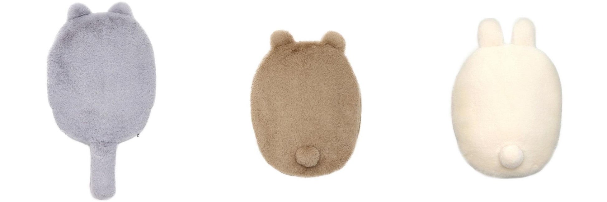 1回の蓄熱(15分)で最大8時間使え、コードレスで持ち運びも便利。ねこ・くま・うさぎの3種類。