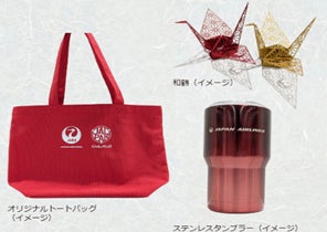JALと復刻のジャルパックロゴが入ったオリジナルトートバッグや、初日の出フライトオリジナルの印字が入ったステンレスタンブラー、過去の初日の出フライトにてご好評頂きましたJALロゴ入りの和鶴付きをお土産として進呈します。