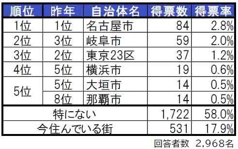 住みたい街1位は3年連続で名古屋市。2位岐阜市、3位東京23区。