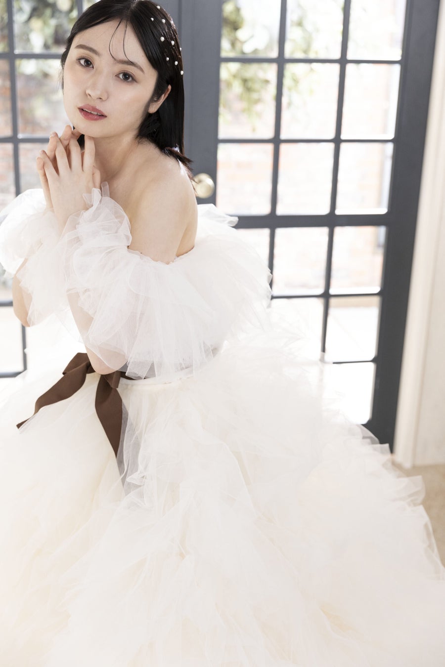 ショルダー部分には大きなリボンが施されており、シンプルかつかわいらしくご着用いただけます!