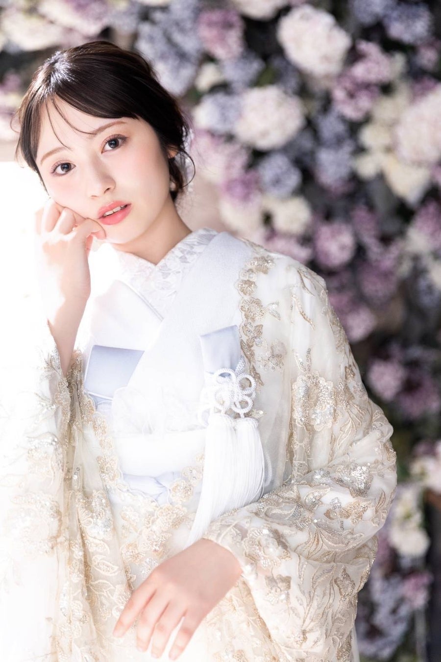綿帽子に洋髪を合わせて、トレンド感と伝統を両立させた最新スタイルを提案。