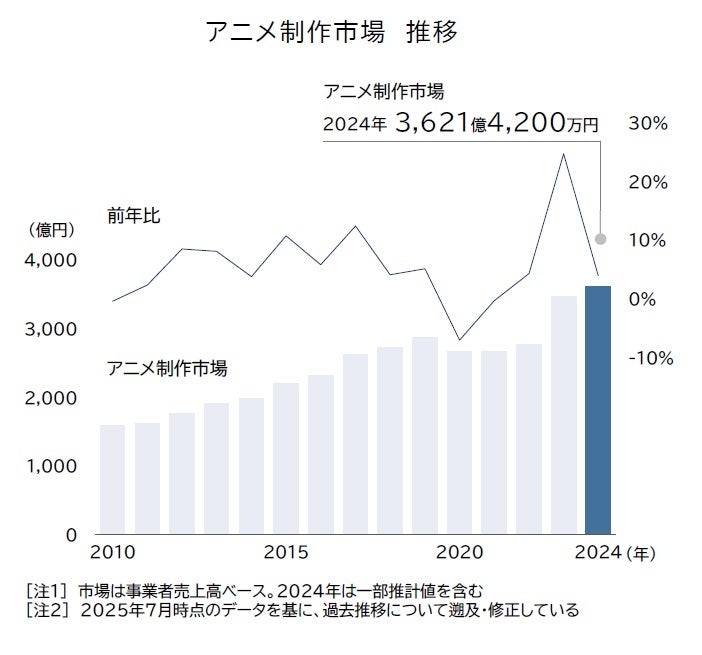 アニメ制作市場 2024年は3621億円 過去最高を更新 元請制作の6割が「業績悪化」アニメーター不足が顕在化