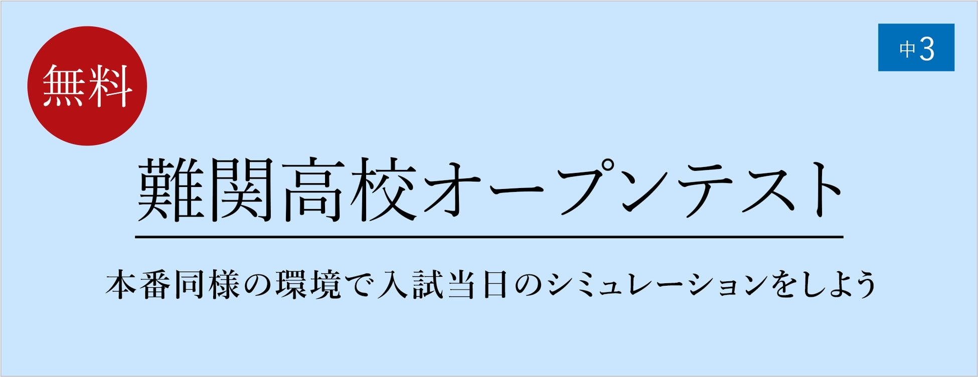 志望校合格には、入試問題の傾向や、具体的にどう対策すべきかを知ることが必要です。今回のオープンテストでは、テスト後に「難関高校攻略セミナー」を開催します。