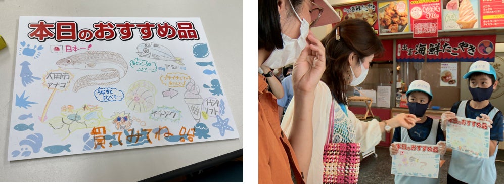 弟の陽祐くんは「難しかったけど楽しかった」、兄の陽海くんは「お店で見ていて販売するのは、簡単かなと思っていたけど、やってみたら難しかった。POPより声掛けが大切だと思った」と感想を話してくれました。2人は、これからも海の色々なことにチャレンジしてみたいと意欲を燃やしています。