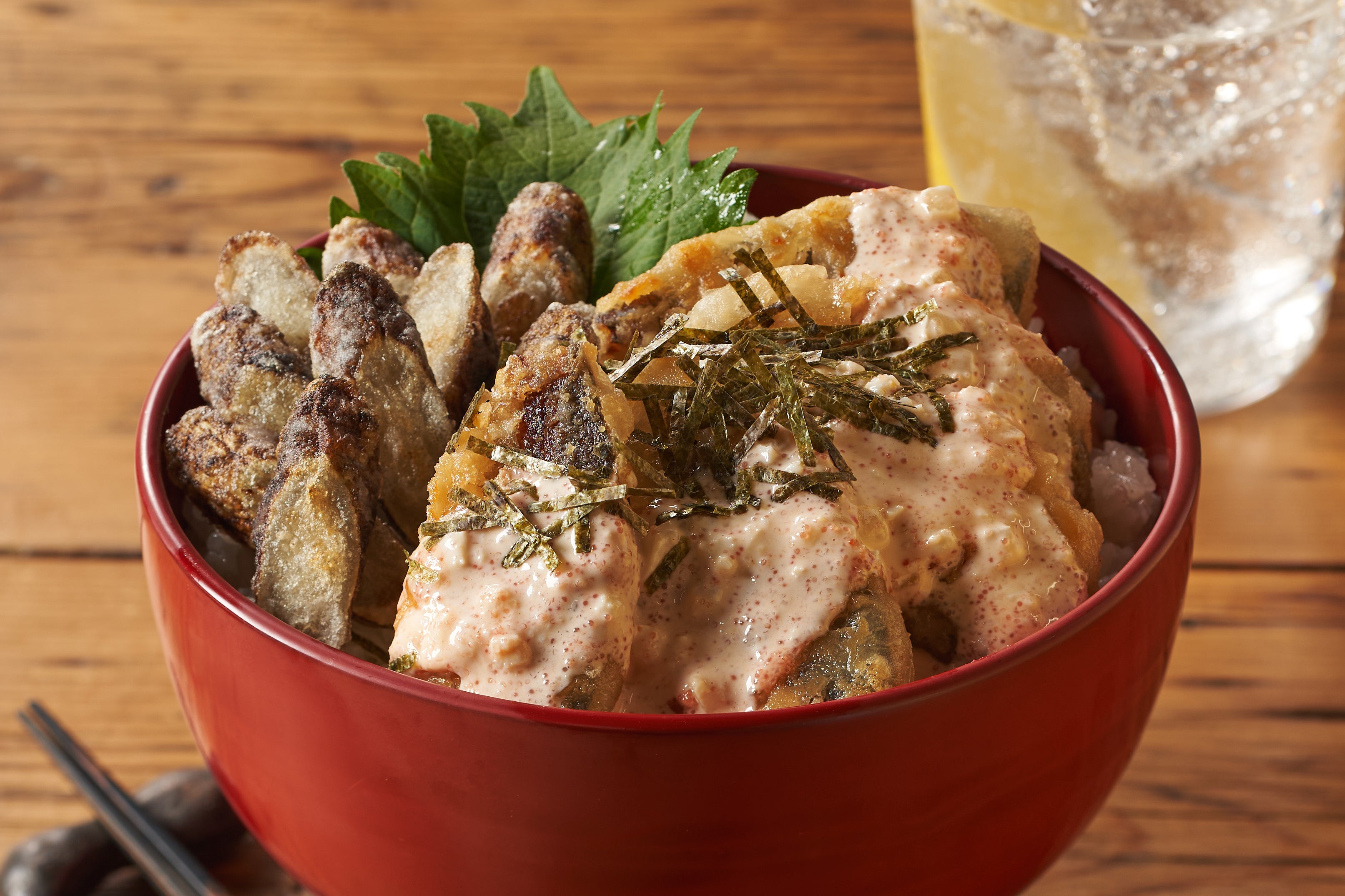 やまや監修・福岡名物の明太子に濃厚なタルタルを合わせた明太タルタルソースは、出汁がしみたごはんがすすむこと請け合いです。こんがり焼いたあじ竜田にからめてお召し上がりください。福岡でよく食べられるごぼうは、出汁で下味を付けて揚げ焼きに。こちらもタルタルと好相性です。