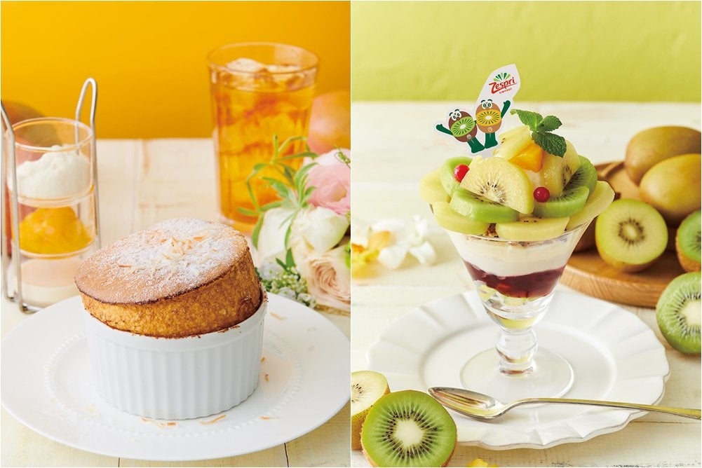 桃やメロンといった夏に旬を迎えるフルーツを使ったスイーツや、かき氷といった冷たいスイーツなど、この時期にあわせた涼しげなメニューを集めました。