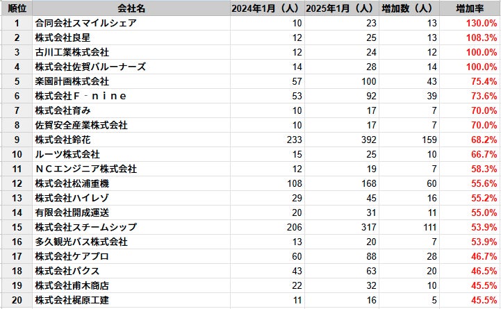 2025年版・佐賀県の従業員数増加率ランキングTOP20を発表!/SalesNow DBレポート