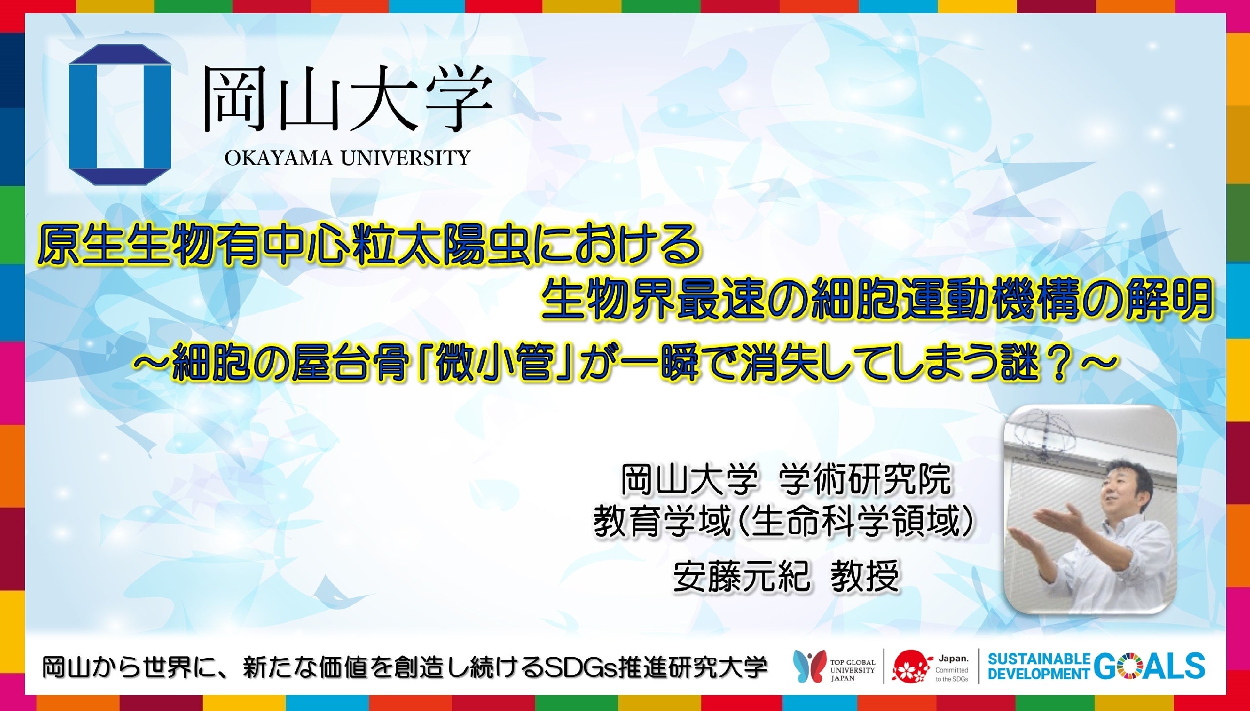 【岡山大学】原生生物有中心粒太陽虫における生物界最速の細胞運動機構の解明 ~細胞の屋台骨「微小管」が一瞬で消失してしまう謎?~