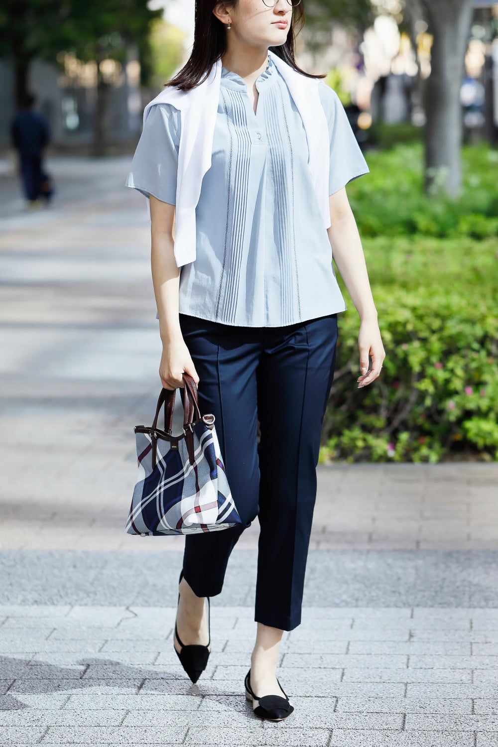 ネイビー&ブルーに頼る 夏のサマ見えオフィスカジュアル