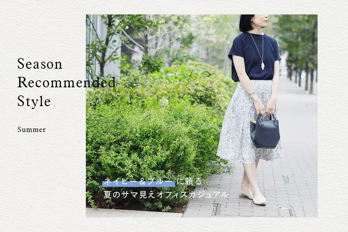 GWが過ぎオフィスでの装いも軽やかになってまいりました。ジャケットレスの薄着の季節も、職場では品よくきちんとした印象に見られたいもの。そこで今回の特集では、1枚でもサマに見える"ネイビー・ブルー"のアイテムを使って、夏のオフィスカジュアルスタイルをご紹介いたします。